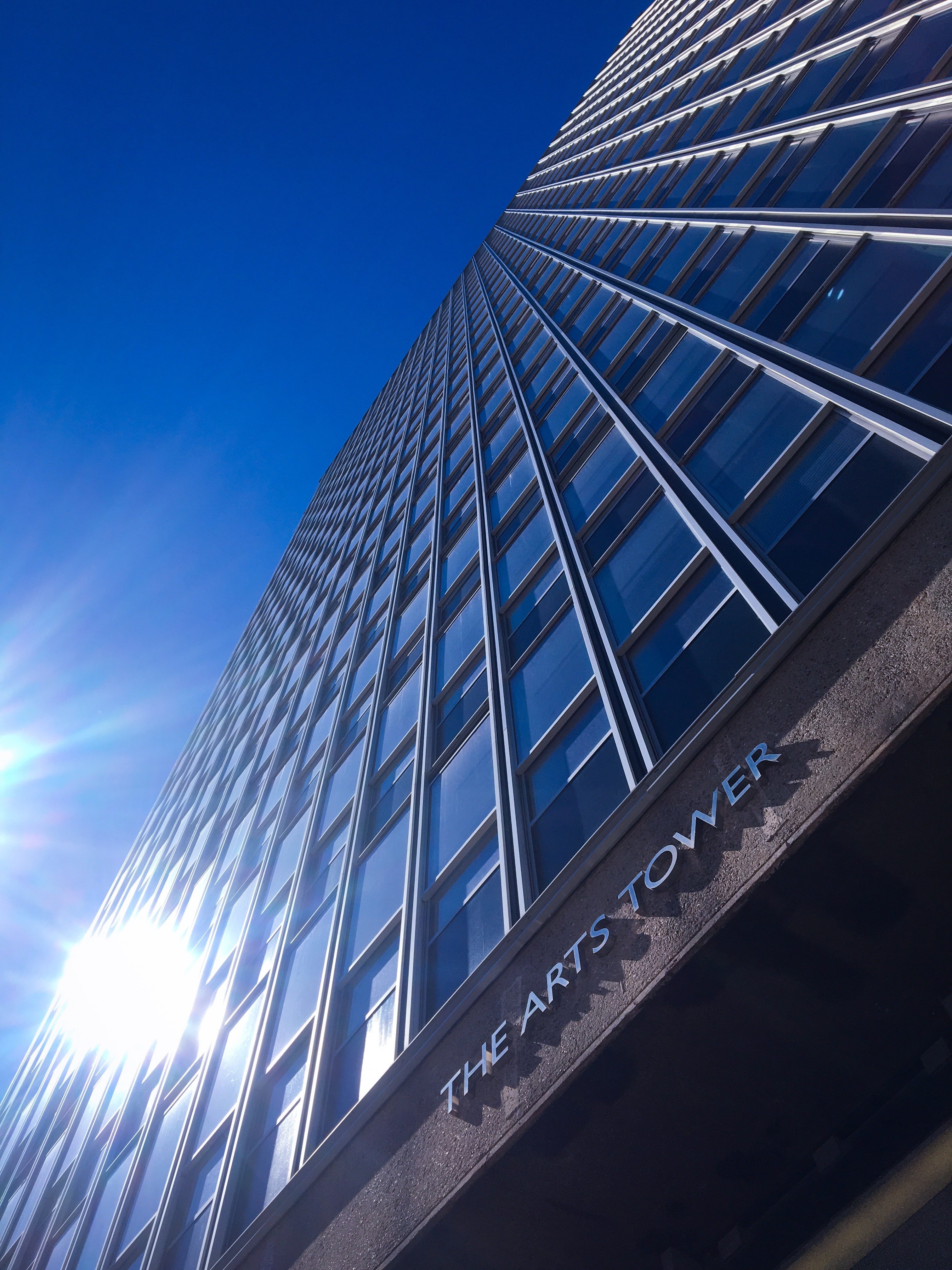 English Heritage said its, “the most elegant University Tower Block in Britain of its period”, which to my mind says it all, it’s just so elegant. The structural appearance of the building has breath-taking simplicity, a sophisticated exterior showing absolute control and restraint in design terms, originating from post war modernist thinking and driven by the International style. The building has 20 storeys with the upper floors used by the School of Architecture, aren’t they lucky! The building with a height of 78m is listed as the second tallest building in Sheffield after St Paul’s Tower measuring 101m tall, which took over in 2009; although the Arts Tower is the highest by virtue of topography.