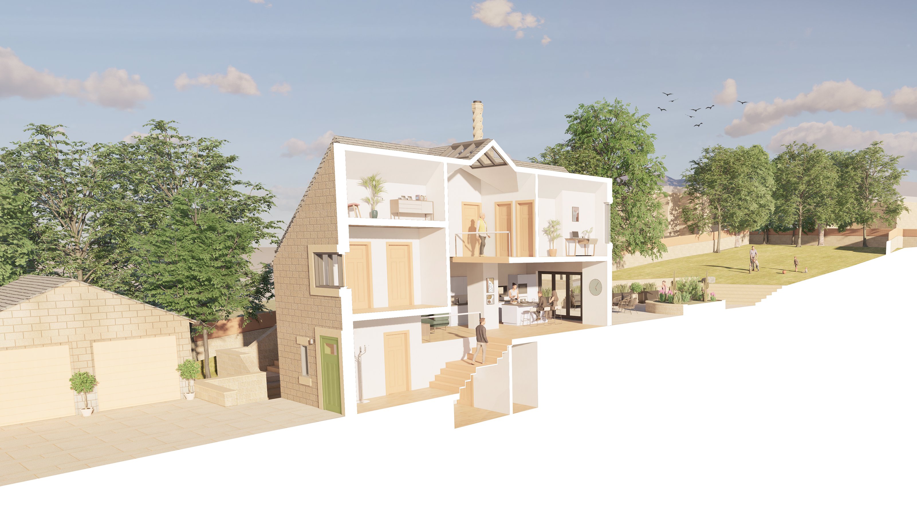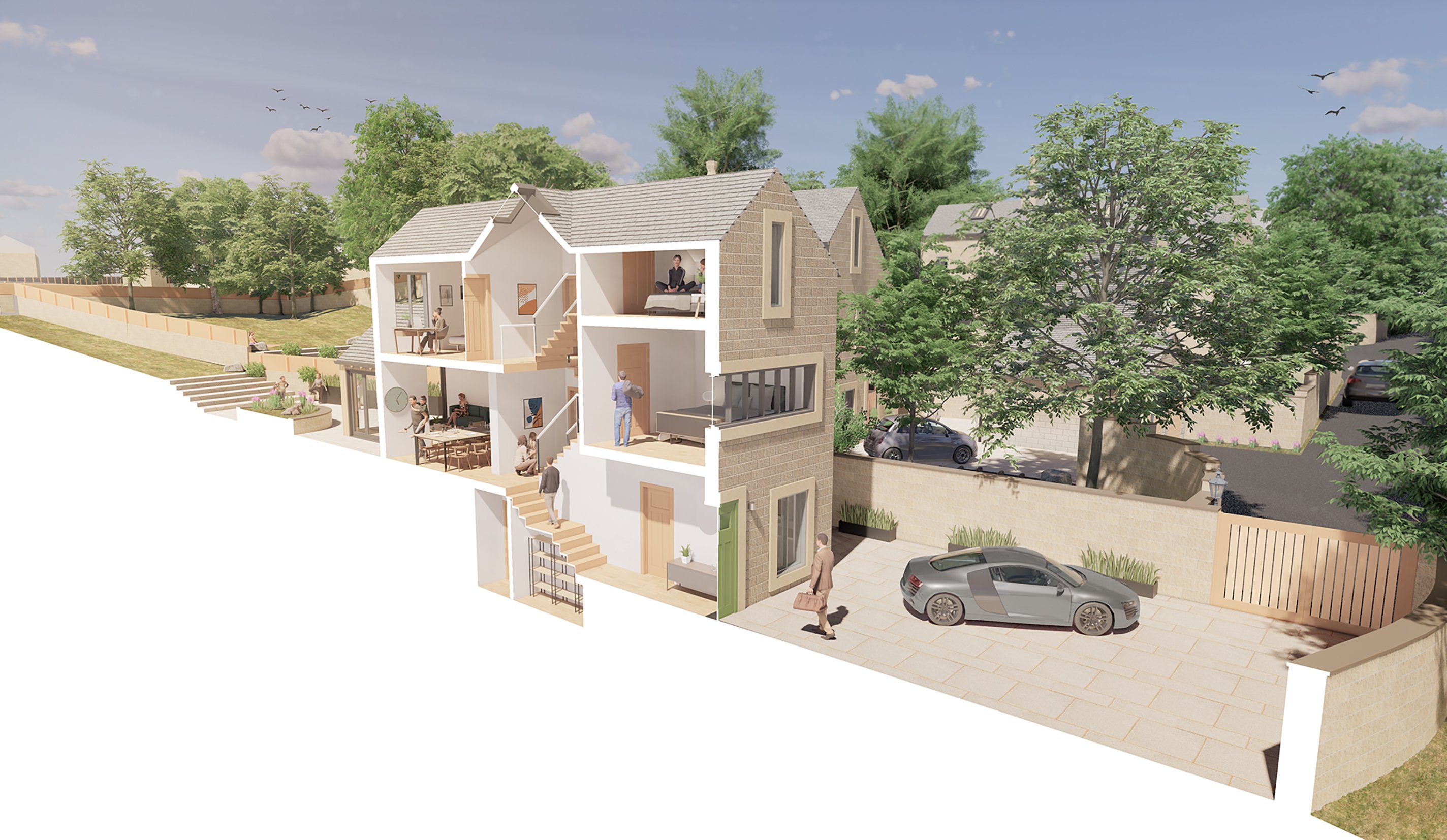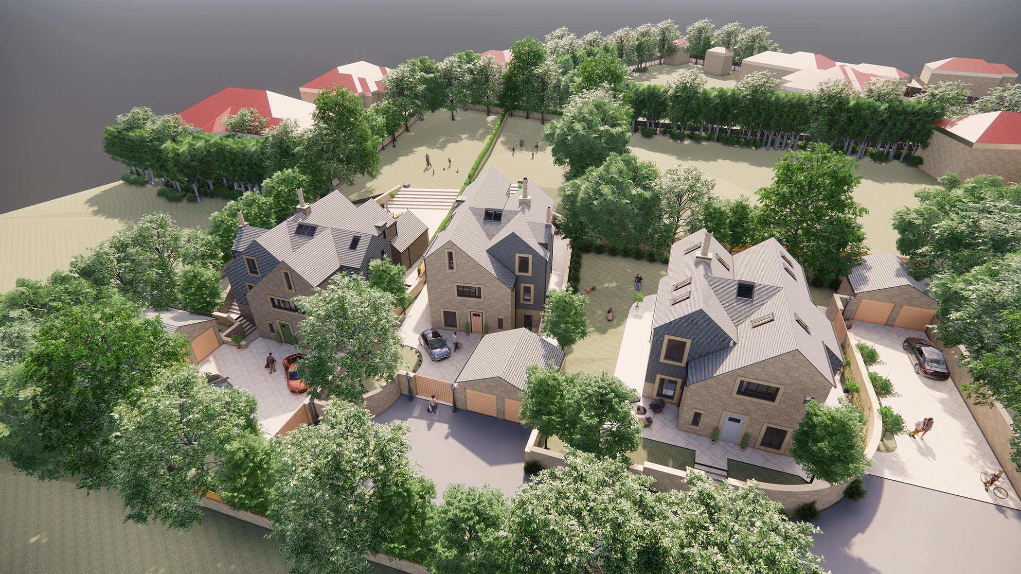 Newly designed homes in the grounds of an Arts & Crafts magnates house are inspired by the original. The original house has distinct character stonework, tiling details, organised window arrangements ordered around ‘form following function philosophies’ with period interiors embodying Arts & Crafts rejection of machine aesthetics. Our proposed new homes follow these clues, however developing homes in a new age that acknowledges a growing understanding and respect for machine and human interactions via engaging technology, identifying with what makes a great home, smart construction and visual linkages to a movement which put humans at the centre of architectural debate.