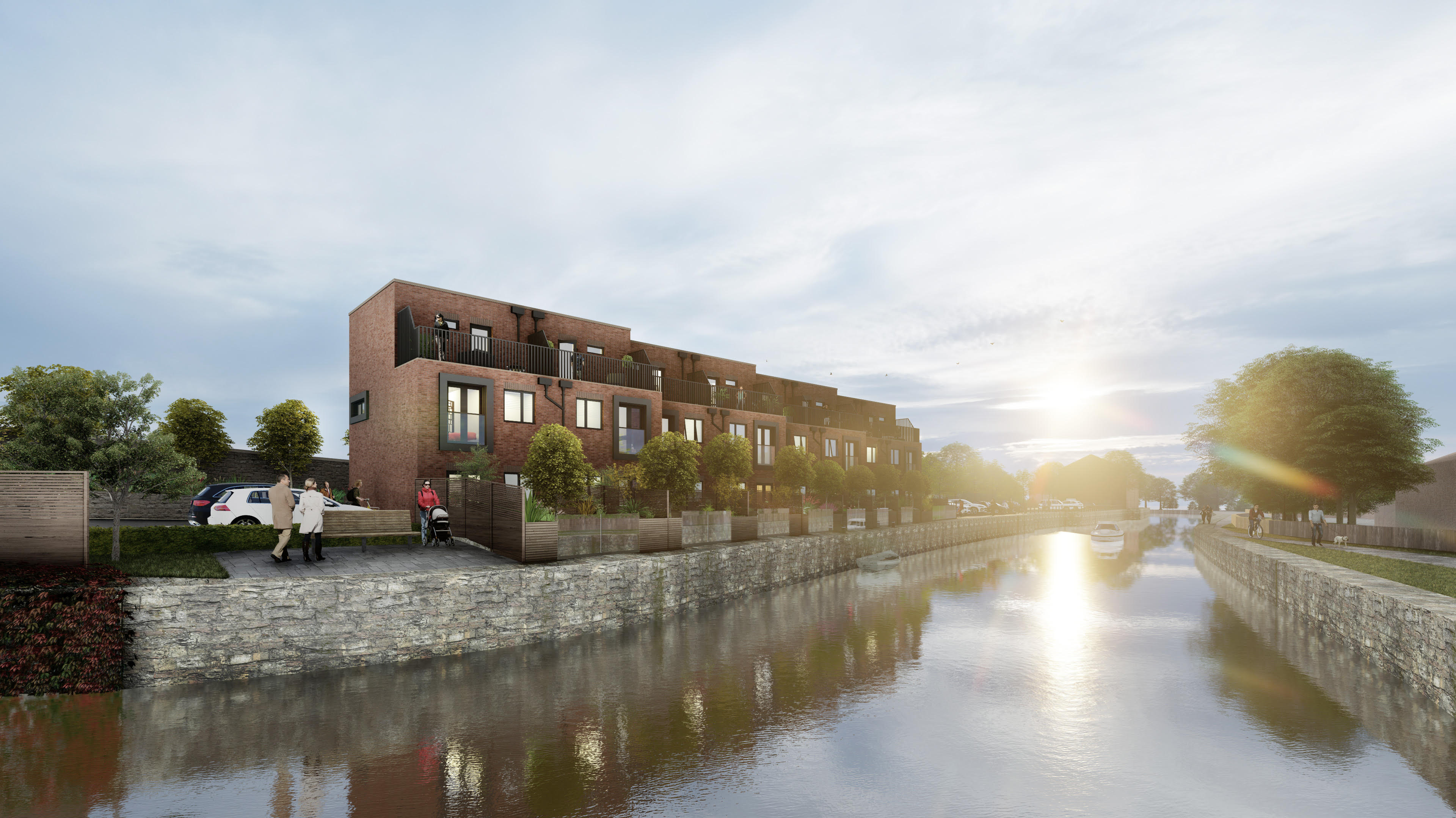 One of a number of simultaneous modular housing sites in Greater Manchester, Southgate & Sarabia Architects have designed Wigan Housing which offers the advantages of waterways living at affordable build levels for our client. The site is long and narrow which is perfect for an echelon plan arrangement, making eight modular housing units more interesting in terms of massing, positioning and modelling. Standing three storeys high, the second floor offers an outdoor space off a floor level with associated rooms, which can be used as a bedroom, living or workspace. A mix of quality working space or peaceful living and leisure, whichever, these homes offer the best of outdoor views, spaces and indoor functionality.